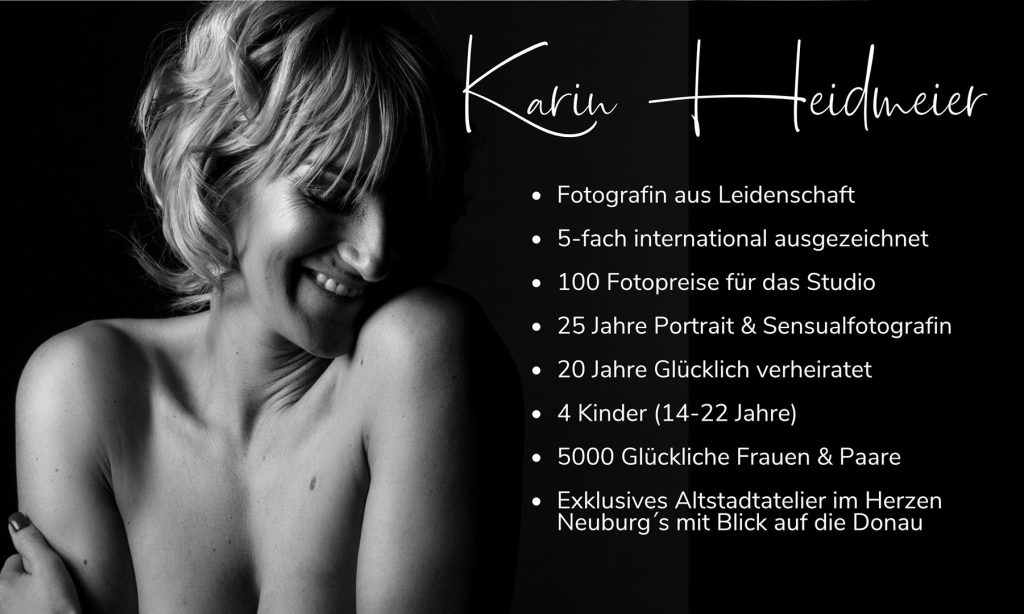 Ich habe länger nach dem für mich richtigen Fotostudio gesucht, da ich mir selber ein Shooting zu einem besonderen Geburtstag schenken wollte. Als ich auf Karins Homepage angekommen war sagte mein Bauch: „Das ist es!“ -Und so war es. Wunderbar offen, unkompliziert, herzlich, professionell und Frauenpower pur. Ich hatte einen genialen Tag mit einem tollen Shooting und wunderbaren Fotos. Karin hat mich gesehen, wie ich mich lange nicht gesehen habe. Balsam für‘s ego plus Lebensfreude pur. Danke!